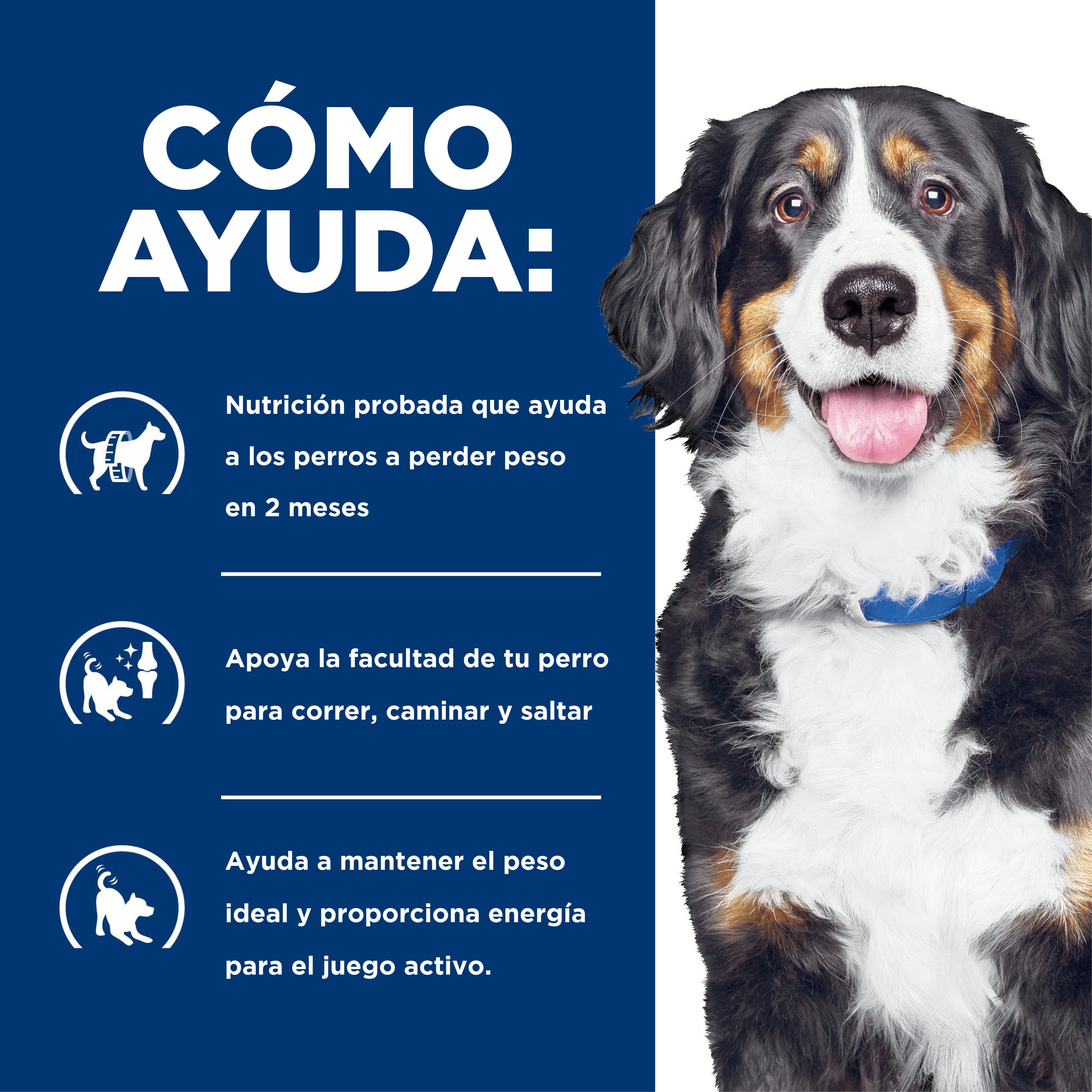 Los nutricionistas y veterinarios de Hill's han desarrollado esta fórmula especialmente para ayudar a controlar el peso y favorecer el bienestar integral de tu mascota.