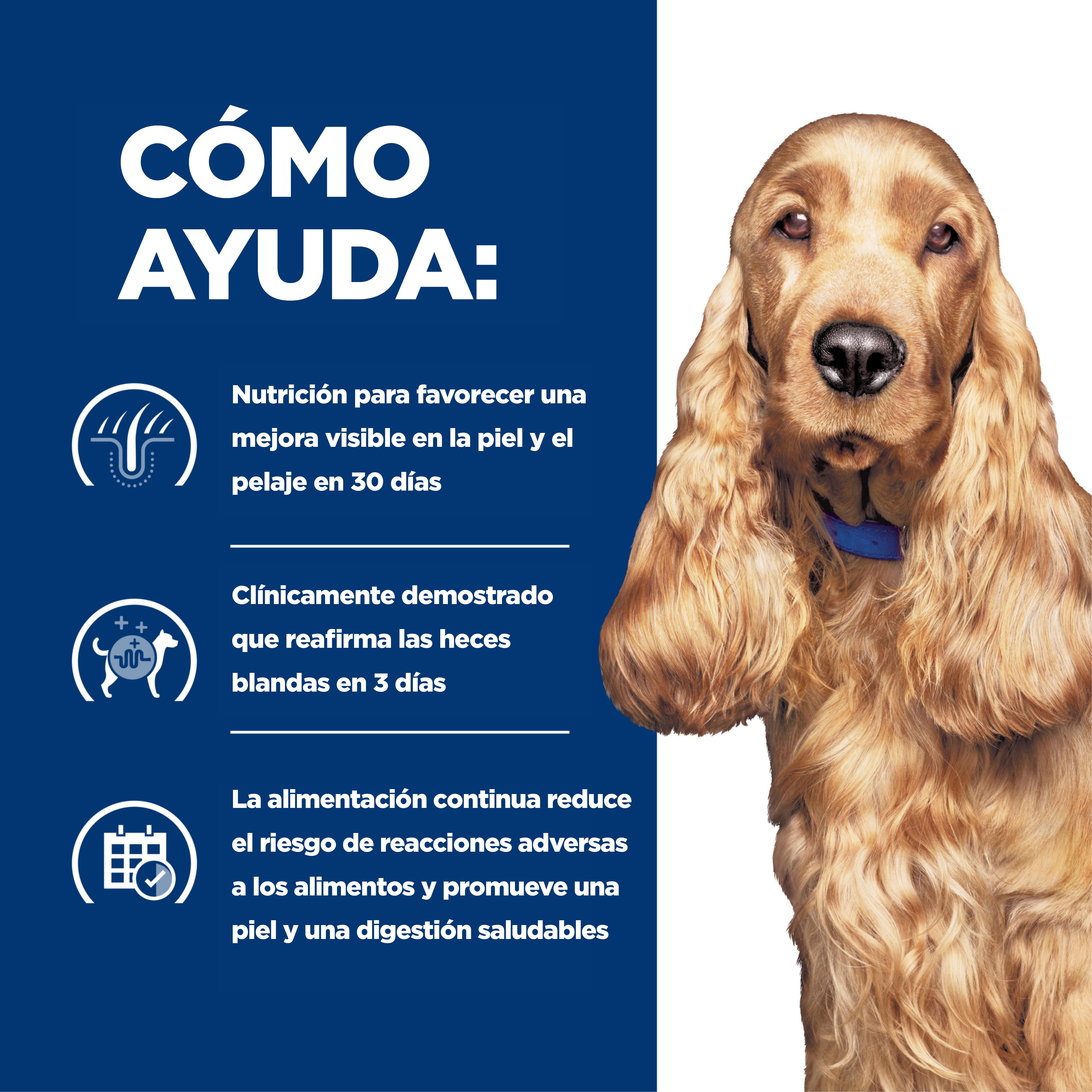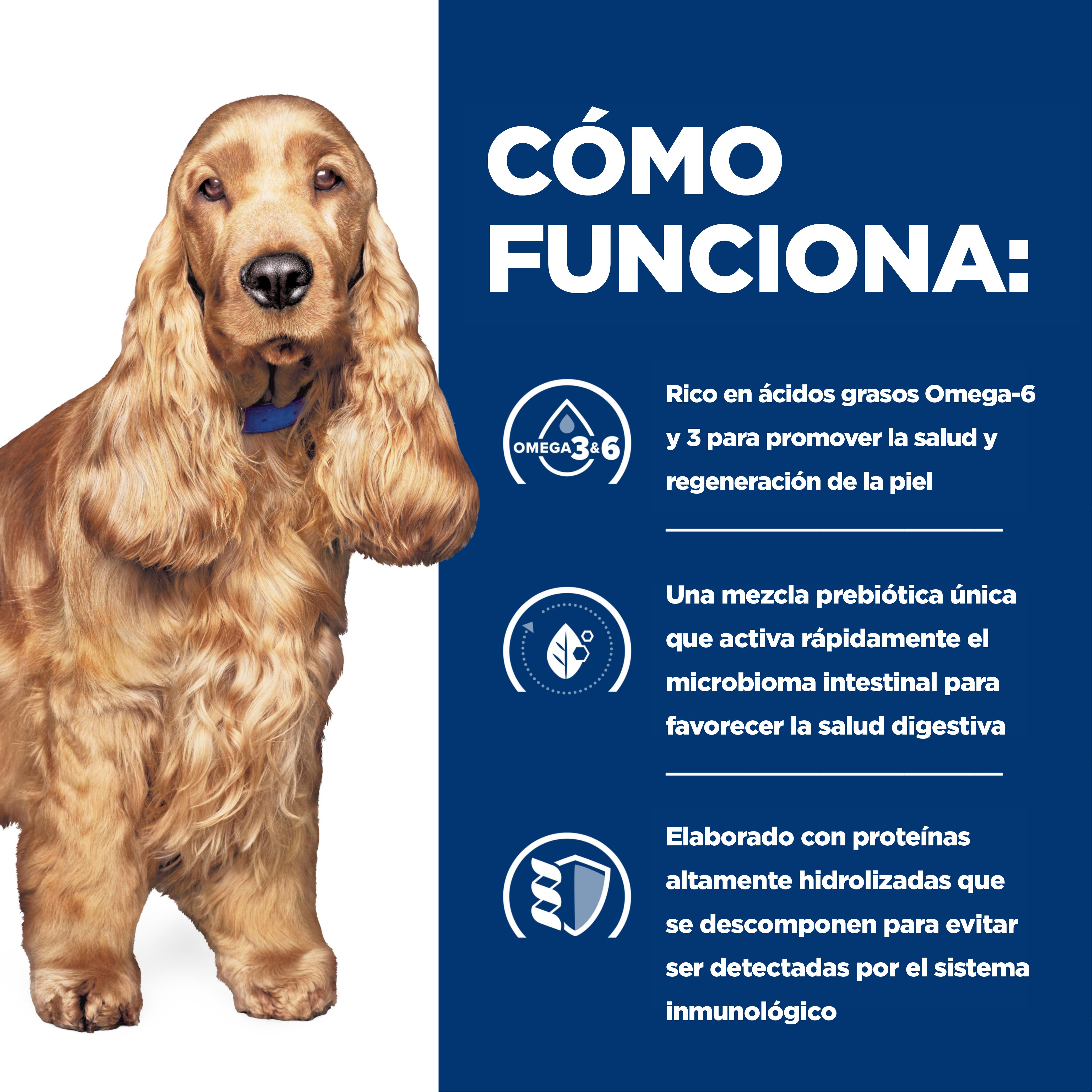 Los perros que presentan reacciones adversas a los alimentos, ya sea por alergias (normalmente a una proteína) o intolerancias, pueden beneficiarse de un alimento formulado específicamente para reducir estos problemas.